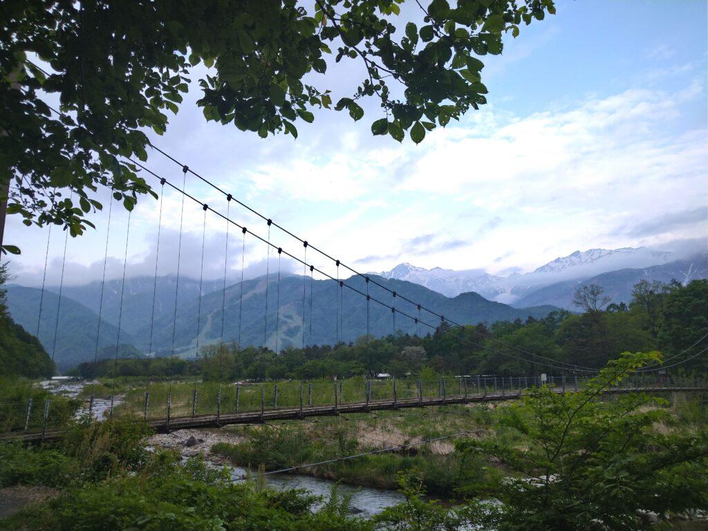 吊り橋を渡りました。前に来た時は、スズメバチの巣があって渡れなかったのですが、今回は渡れました。緑がいっぱいのいい眺めです。