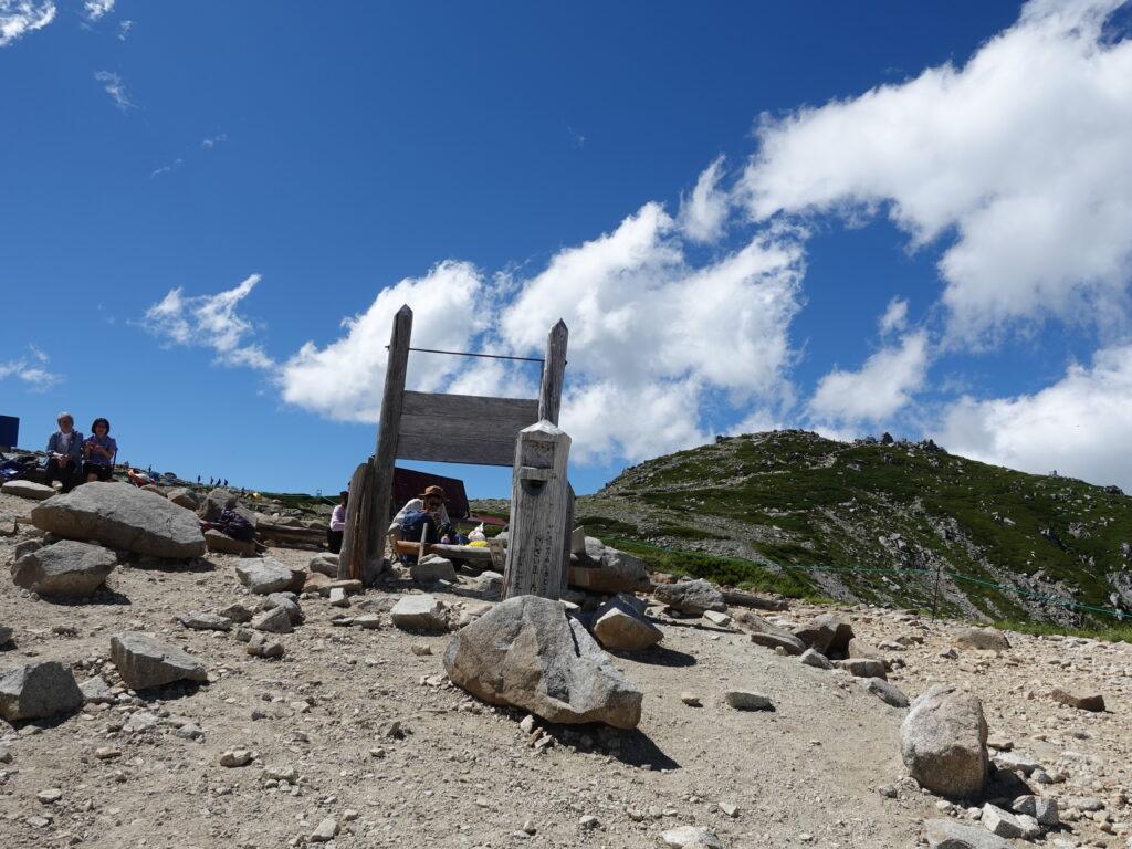 午後2時19分に宝剣岳山頂です。岩のふもとに祠があったので、岩の上には登りませんでした。