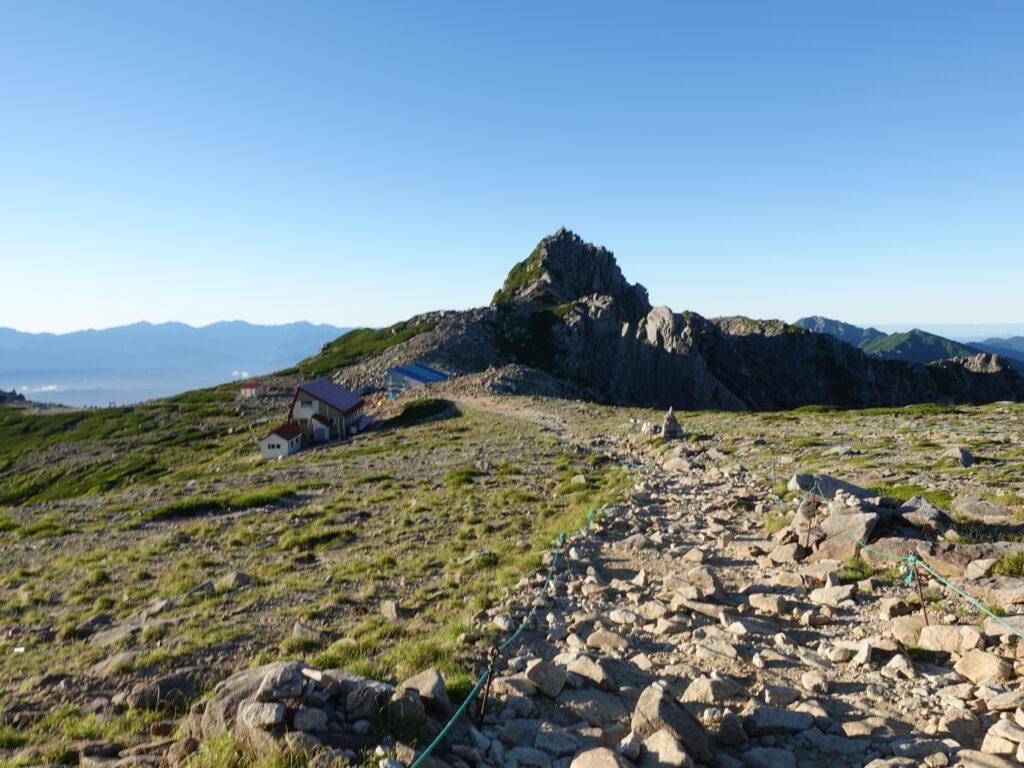 ホテル千畳敷が見えます。時間が早いせいもあって、登ってくる登山客には会いませんでした。ちょうど降りたところにツアー客と思われる団体客が登ろうとしていました。