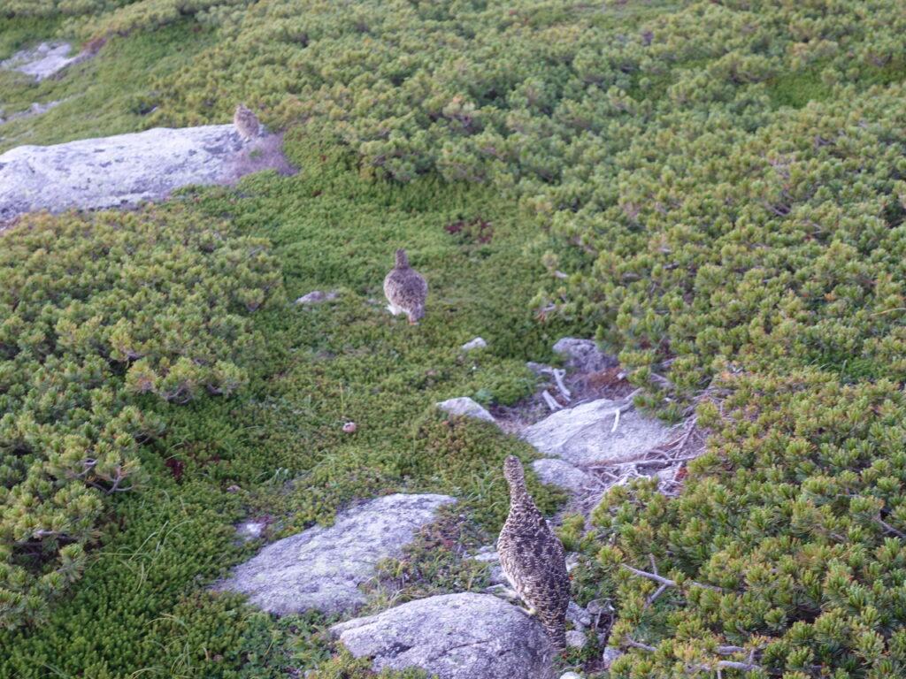 日の入りを見に、再度駒ヶ岳に登りました。登る途中で、さっきの雷鳥の家族が元気そうに歩いてました。