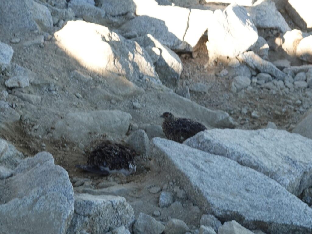 ビールも飲んだので、下山したのですが何か動くものがいると思ったら雷鳥でした。砂浴びをしています。