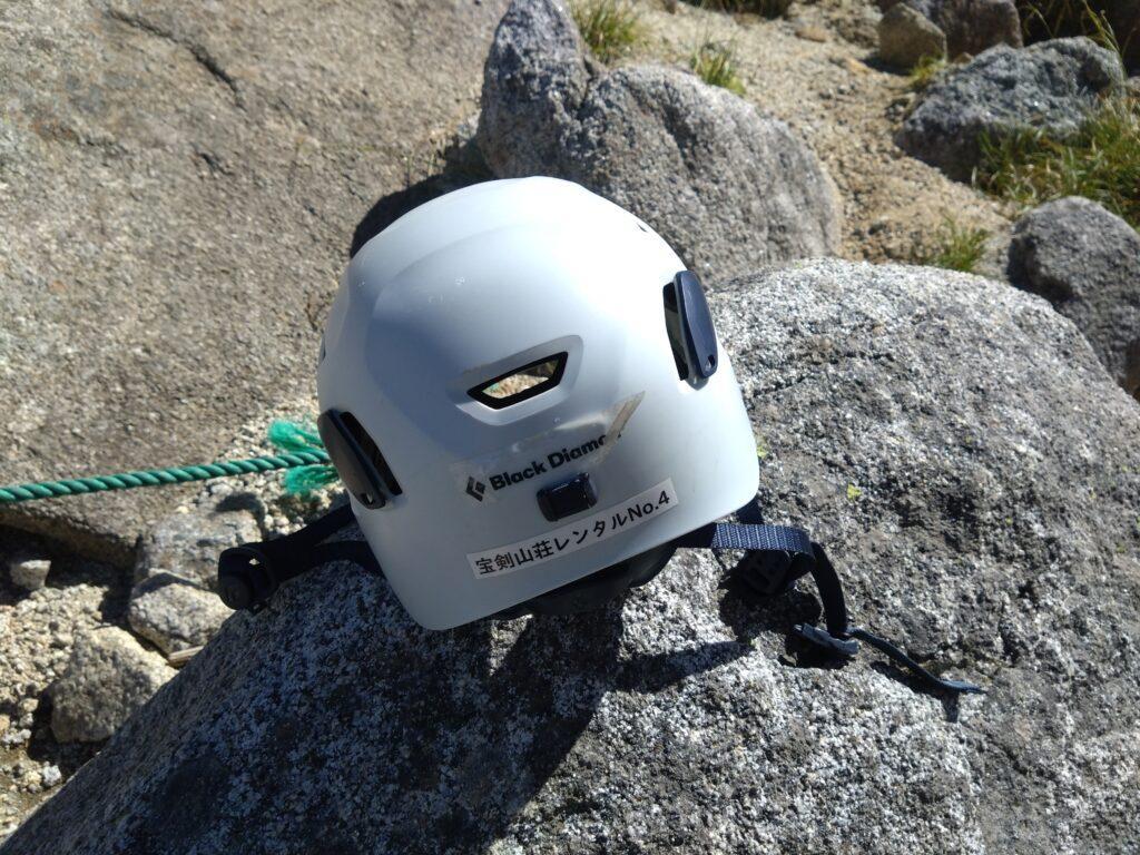 宝剣岳は、ヘルメットが推奨されているので、宝剣山荘で借りました。800円です。ついでに、荷物を置かせてもらいました。