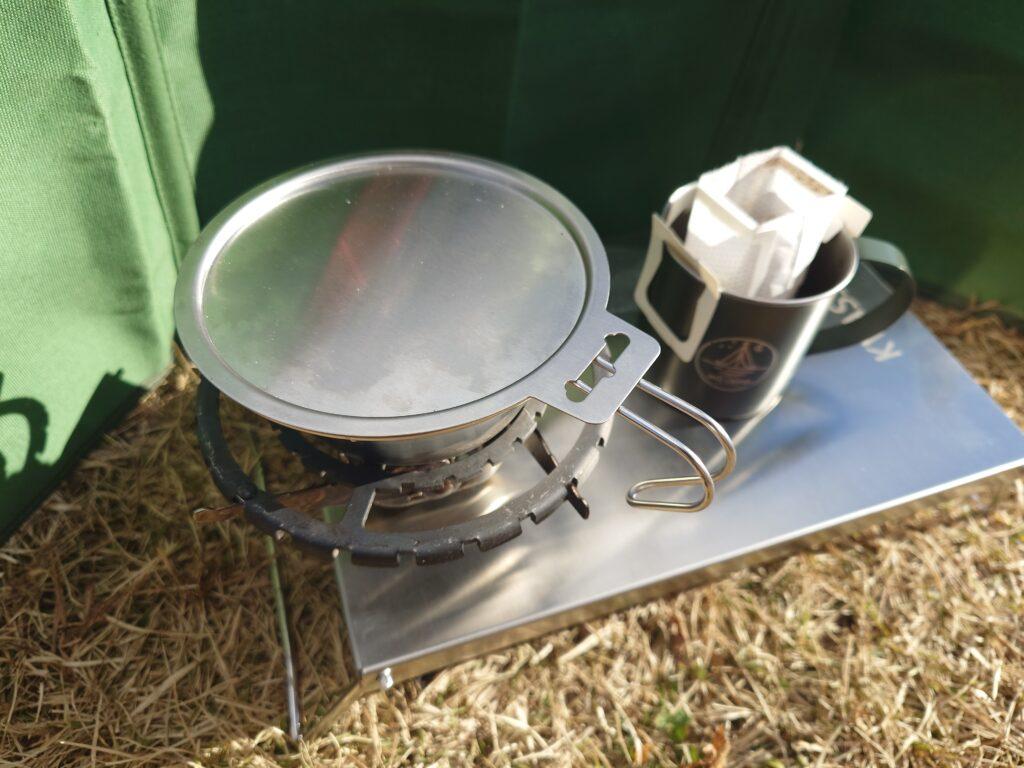 軽量化のため、シャラカップを1個にしかもってこなかったおで、おでんと湯煎が同時にできません。昼に買った缶詰で湯煎しました。